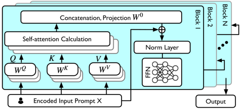 - 循环:把你刚填进去的字当成输入的一部分,继续算下一个字。